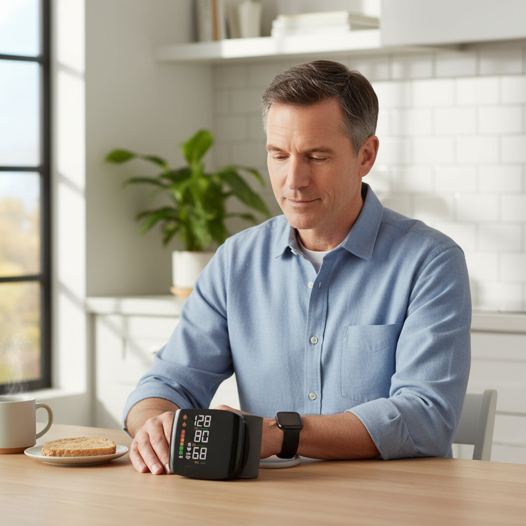 For the most accurate tracking of your blood pressure, it’s recommended to take readings 1–2 times per day — for example, once in the morning before breakfast and once in the evening before bed. Each measurement takes only about 30–60 seconds.