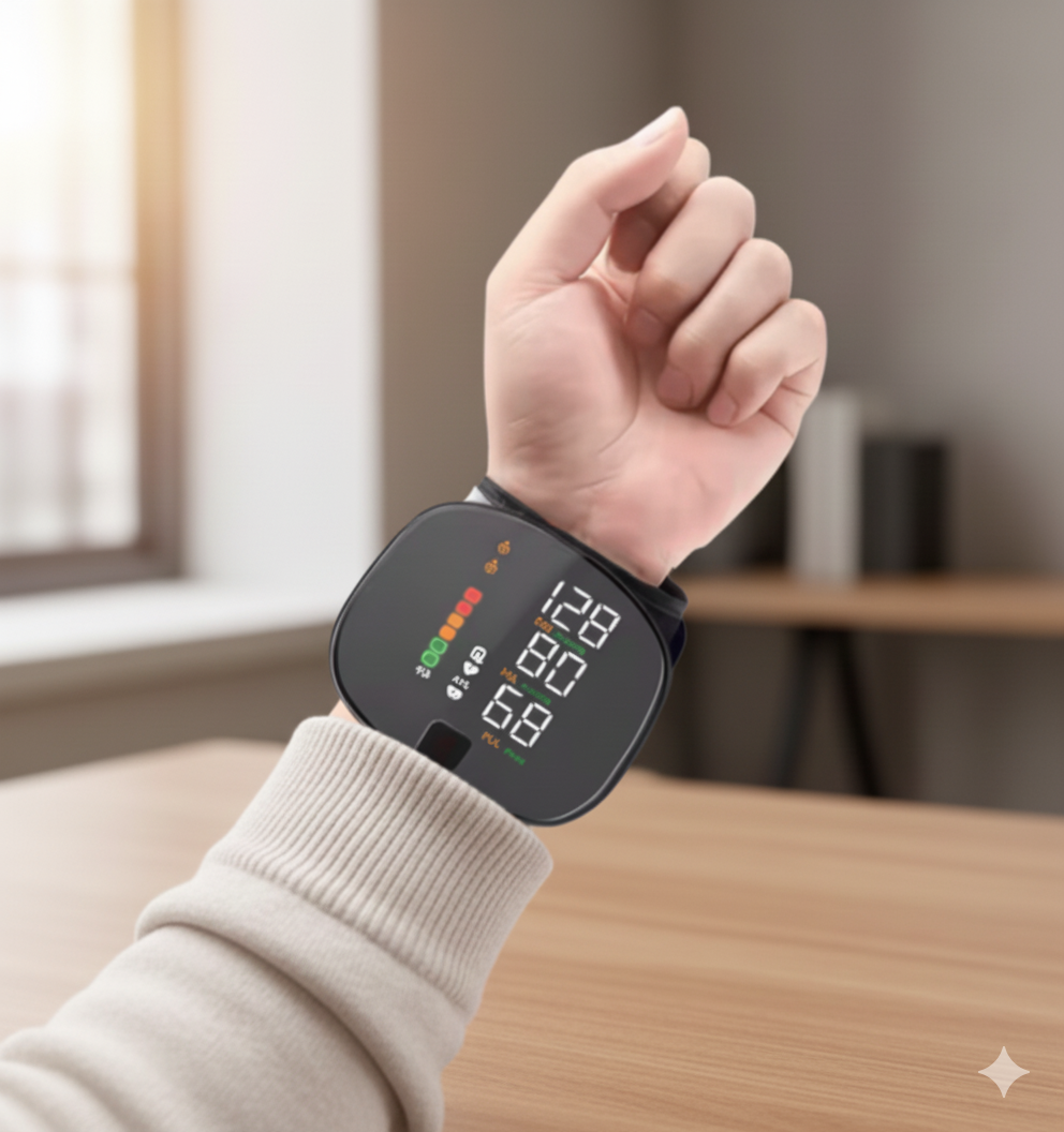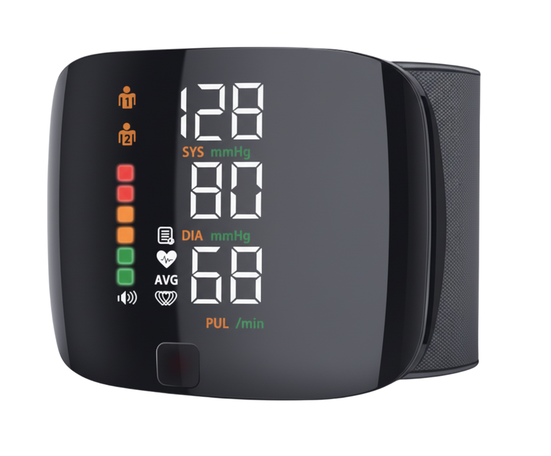 This portable wrist blood pressure monitor is designed to help you easily track your cardiovascular health. It accurately measures blood pressure and pulse rate, making it useful for individuals monitoring hypertension (high blood pressure), hypotension (low blood pressure), stress-related changes, or general heart health. Regular use can help you detect changes early, manage your health more effectively, and share consistent readings with your healthcare provider.